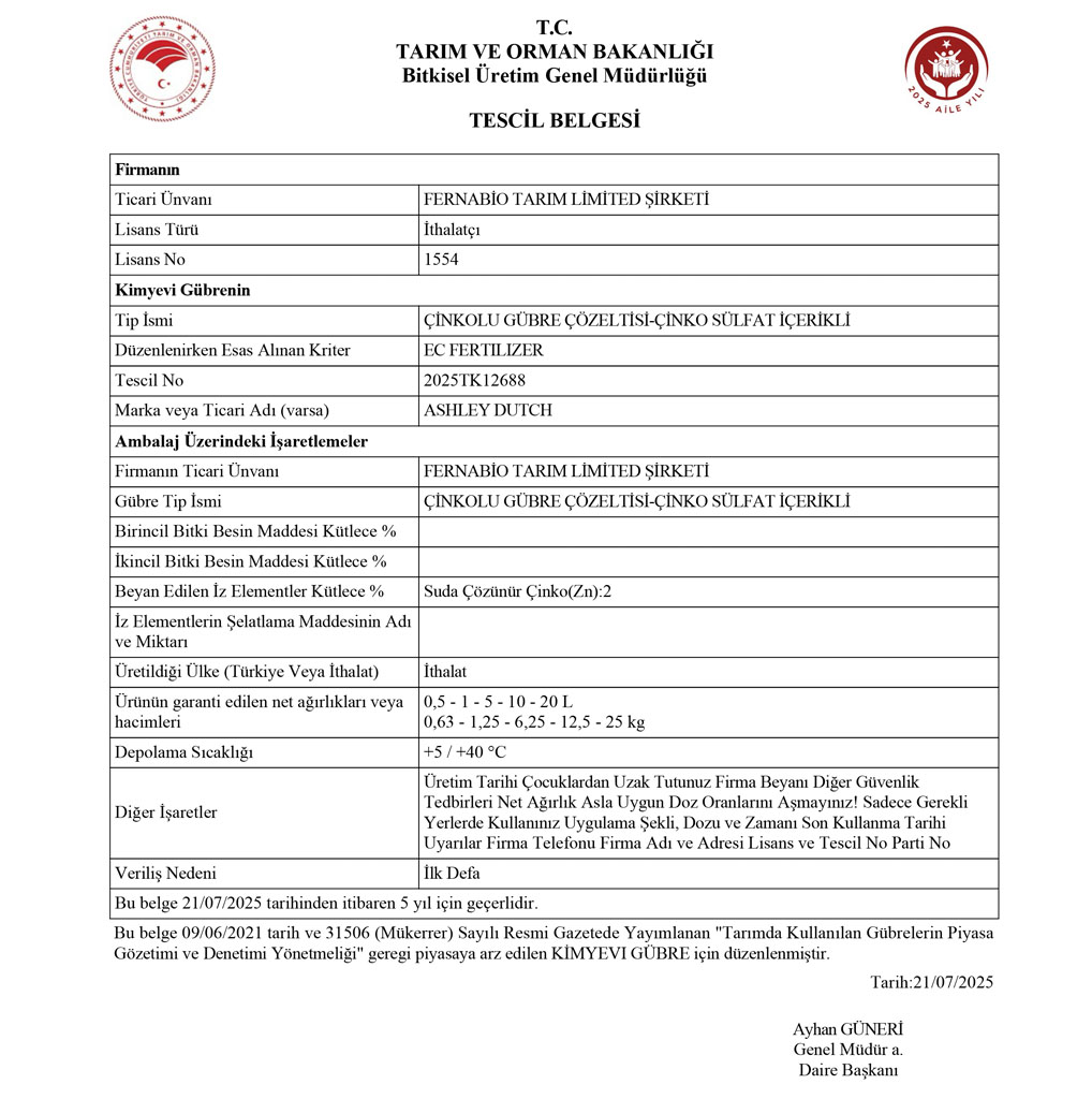 | Suda Çözünür Potasyum Oksit (K2O) | %2,5 |