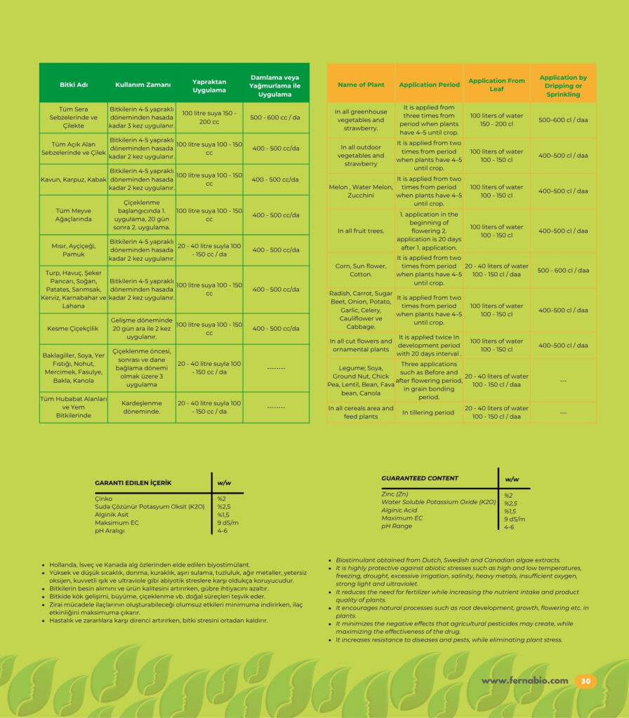 - Hastalık ve zararlılara karşı direnci artırırken, bitki stresini ortadan kaldırır.